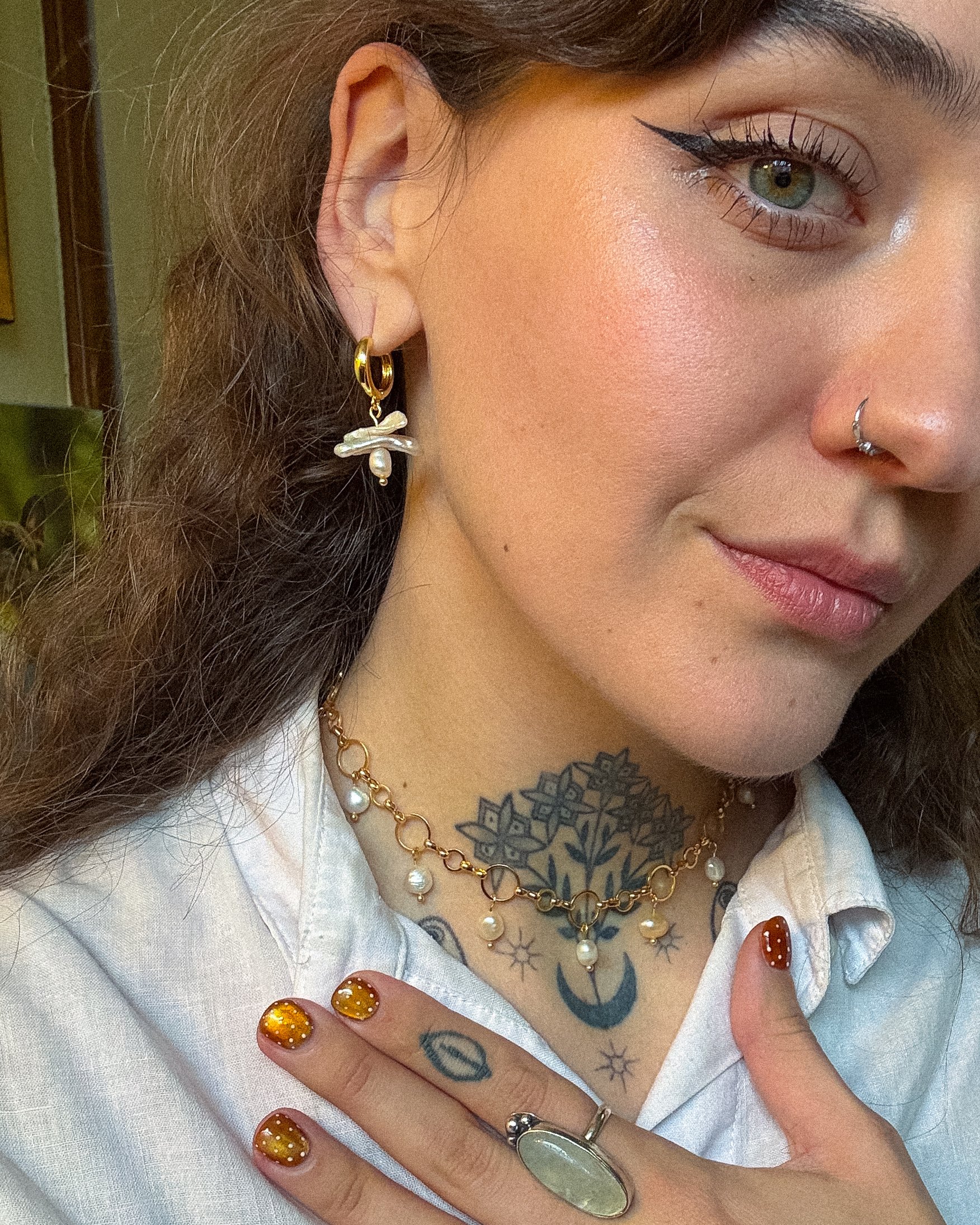 Vysions $750.00 The Starr $550.00 SIMPLE GOLD CHOKER $98.00 ANGEL NUMBERS CHOKER $150.00 THE TREASURE CHOKER $195.00 3 PEARL CHOKER $135.00 Three Pearl Chain $60.00 O Ring 🌀 $80.00 The Asymmetrical Chain $88.00 The Chain $88.00 Pearl Slip Chain $125.00 Simple Pearl Choker $135.00 Pearl Choker $150.00 BALANCE EARRINGS $75.00 GOLD PEARL HOOPS $65.00 The Staples $45.00 Pearls n Spikes $55.00 Stardrops $65.00 Gift Card from $25.00 UNFORGETTABLE $185.00 Sold out ELATION $185.00 Sold out SERAPHIC $185.00 Sold out